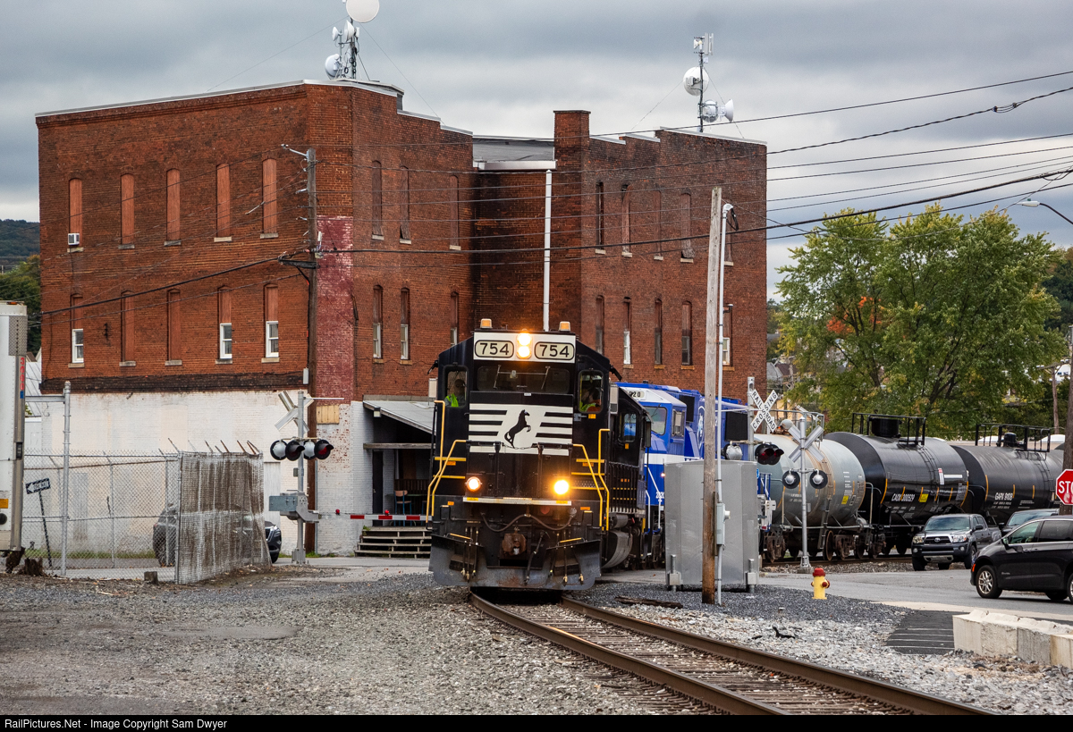 NS HI10, the Hollidaysburg Local rolls through the Cove S-Curve with a special visitor trailing 3rd. This blue SD60I, numbered PSU 2020, is an ex-NS SD60 that will be used by Rail Transportation Engineering students at Penn State Altoona.