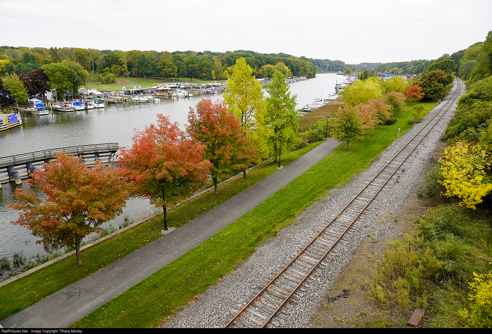 A fall view, looking South, of the unused portion of the CSX Charlotte Runner from Boxart St. to Lake Ontario along the Genesee River.