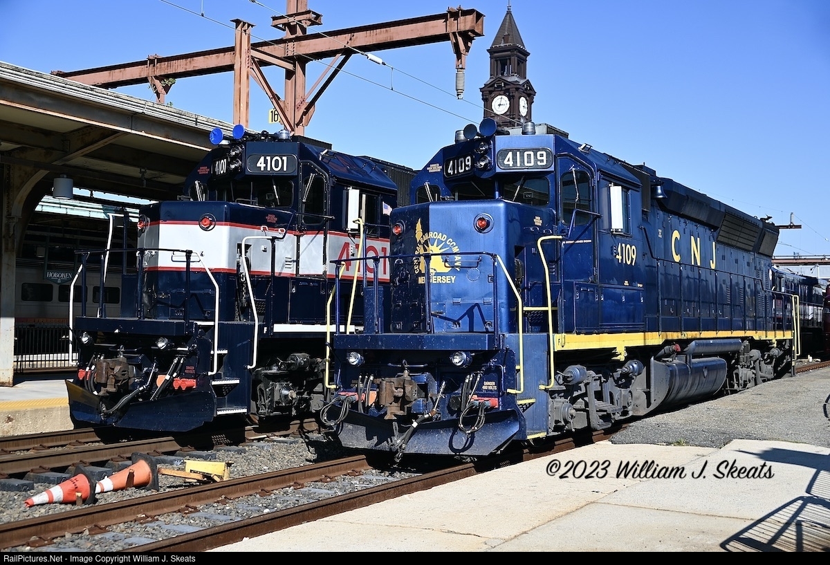 CNJ "Bluebird" GP40PH-2 4101 was part of a 13-Unit GP40P order from EMD purchased by the CNJ in 1968. Wore a similar scheme in CNJ days. Repainted in NJDOT days before NJ Transit. It was repainted in October 2022 to honor NJDOT as part of NJ Transit's 40th Anniversary. Parked next to NJ Transit GP40PH-2 4109 also painted for the 40th Anniversary. "Meet the Heritage Fleet" at Hoboken Terminal also celebrating their 40th Anniversary.