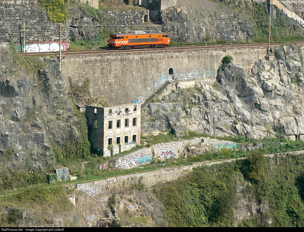 | Looking more like a model railroad scene, a class 2600 electric loco is seen between Porto Sao-Bento and Porto Campanha. |