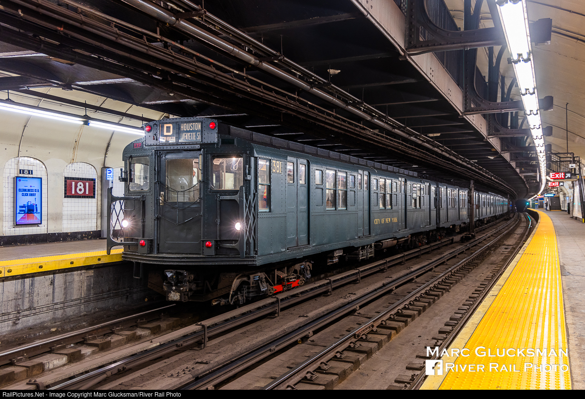 Repainted And Ready To Roll. With a fresh coat of paint and relettered "CITY OF NEW YORK" the train led by R-1 381 (ACF, 1930-1931) is prepared for the upcoming Metropolitan Transportation Authority - MTA NYCT Subway/ New York Transit Museum "Holiday Nostalgia Rides". Included in the cost of a regular fare on every Saturday in December, these cars will operate round trips between 2nd Avenue (on the uptown F line) and 145th Street (on the downtown D line). During a test run on Tuesday, November 28, 2023, the train is seen passing through the 181 Street Station on the A line.