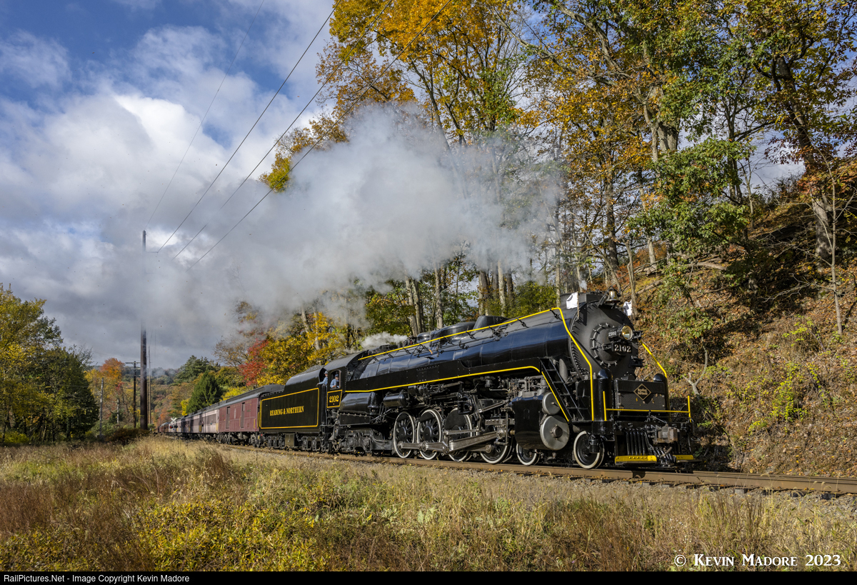 Images from charters and regular operations depicting the Reading & Northern's two steam locomotives, the 4-8-4 Northern #2102 and the 4-6-2 Pacific #425.