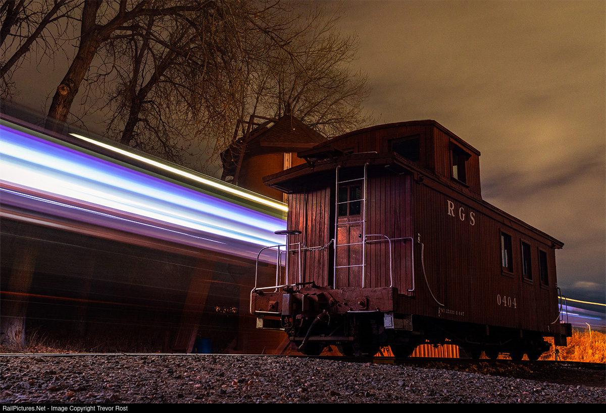 | The Polar Express is one of the Colorado Railroad Museum's most popular events, allowing guests to live out the scenes depicted in the book and movie. In this long exposure, D&RGW 491 hauls a packed train past RGS Caboose #0404 as it is being stored in the siding next to the No Agua water tower. |
