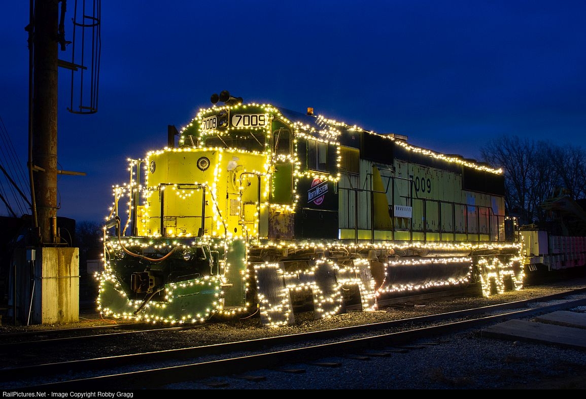 CNW SD50 7009 sits decorated at IRM for the Happy Holiday Railway event.