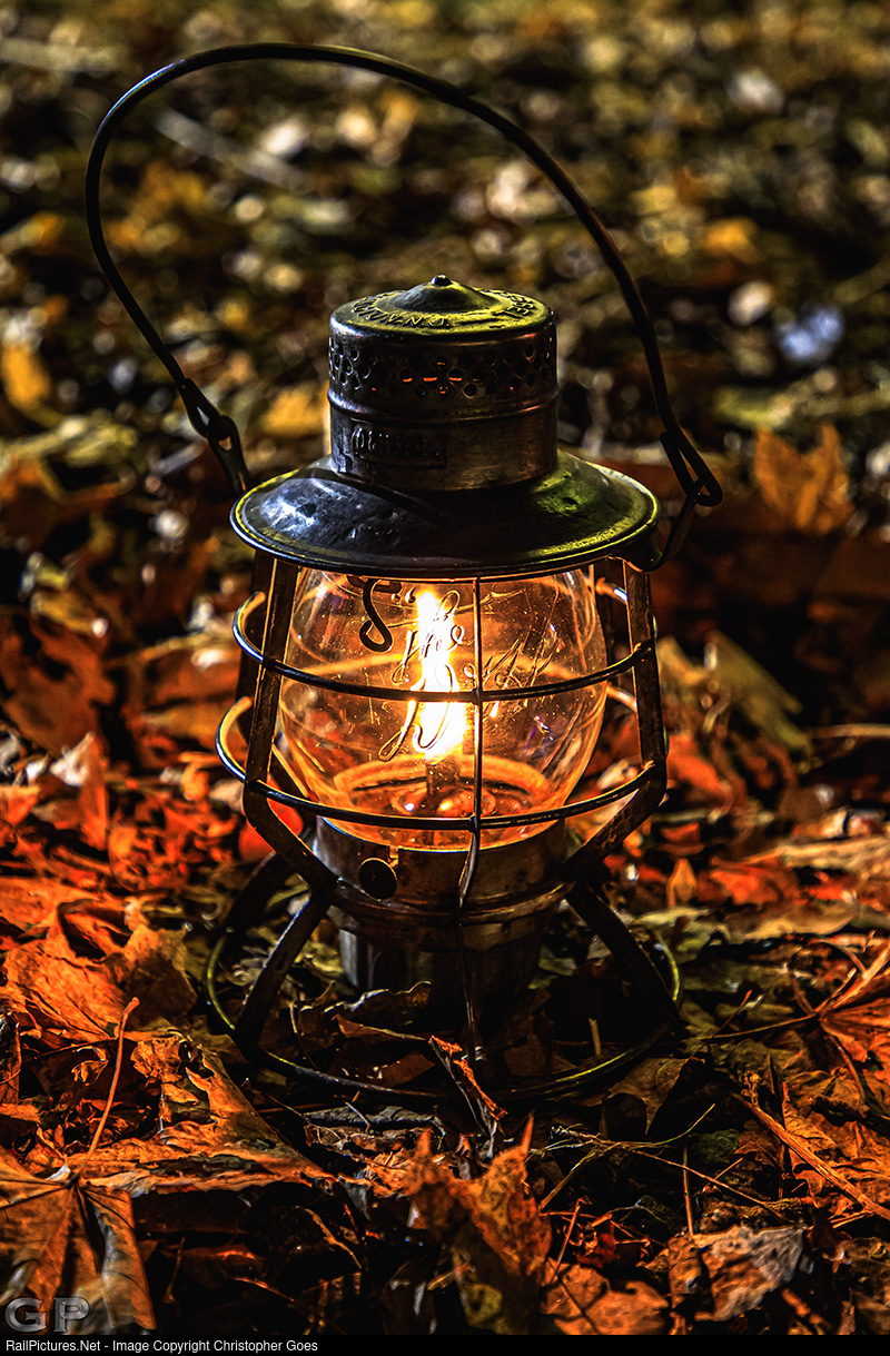 An original D&H Lantern used by conductor Jared shines bright at the end of the night while the crew warmed up by the fire pit.