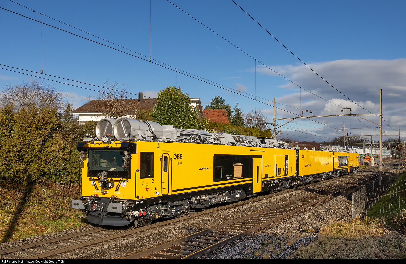 The austrian railways ÖBB ordered 18 new fire fighting and rescue trains from StadlerRail for the infrastructure department. The first built train X122 # 001 (99 81 9173 007-1) is on a test run 32251 from Sulgen to Oberaach, running through Erlen. The power of this 3 car "ServiceJet" is 4000 Hp from the overhead wire (15000 V 16,7 Hz AC), 1060 Hp from diesel motors or 280 kW from a battery, maximum velocity is 160 km/h. In the middle car are up to 40'000 liter water. There are 4 jet fans on the roof to protect the emergency services and the Servicejet against smoke and high temperatures. A filter system cleans the air and overpressure prevents smoke from entering. This so-called protective ventilation ensures a protected interior for the operating personnel, the emergency services and the people being evacuated. Thermal imaging cameras also help to better identify people in a smoky environment.