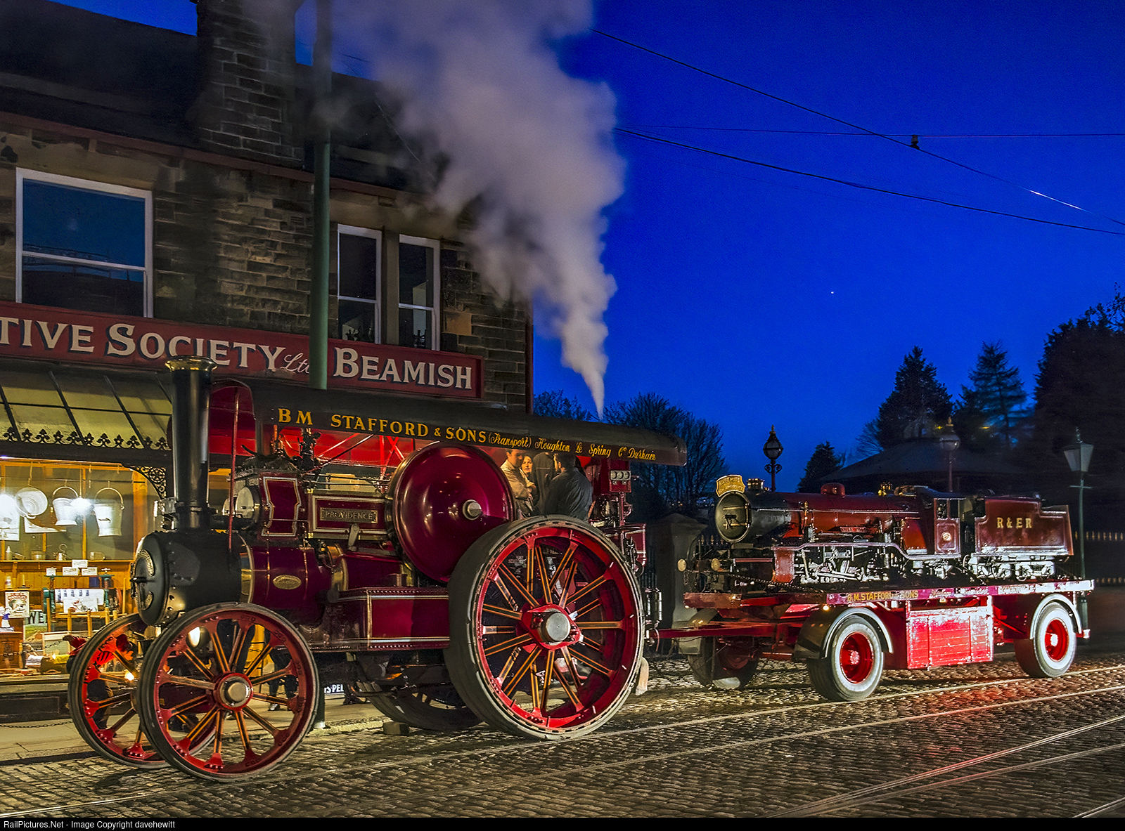 The locomotive the River Mite belongs to the Ravenglass and Eskdale railway, a narrow gauge line in the Lake District. It was built in York and made history by being delivered to the railway by means of a traction engine. When this locomotive visited Beamish museum several years ago, the opportunity was taken to reenact this event.