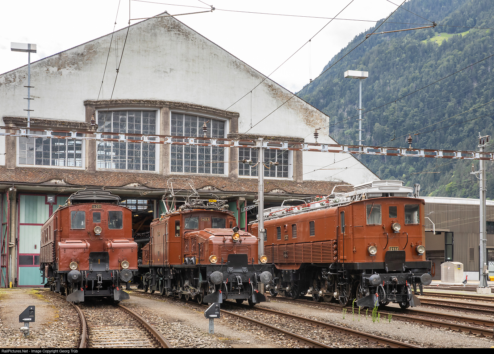 RailPictures.Net Photo: 14201, 14253, 12332 SBB Historic Ce 6/8 I, Ce 6/8 II, Be 4/6 at Erstfeld, Switzerland by Georg Trüb