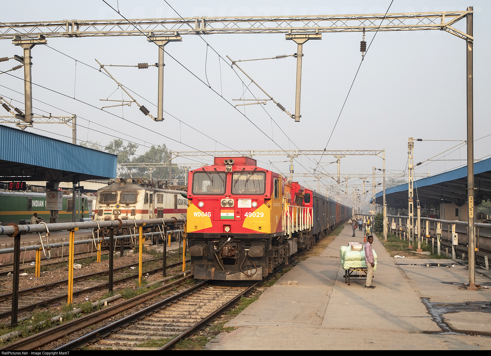 | One of the new GE derived locos taking over from ALCOs (WDG4G) passes through Jaipur station with a fregith train just after sunrise. |
