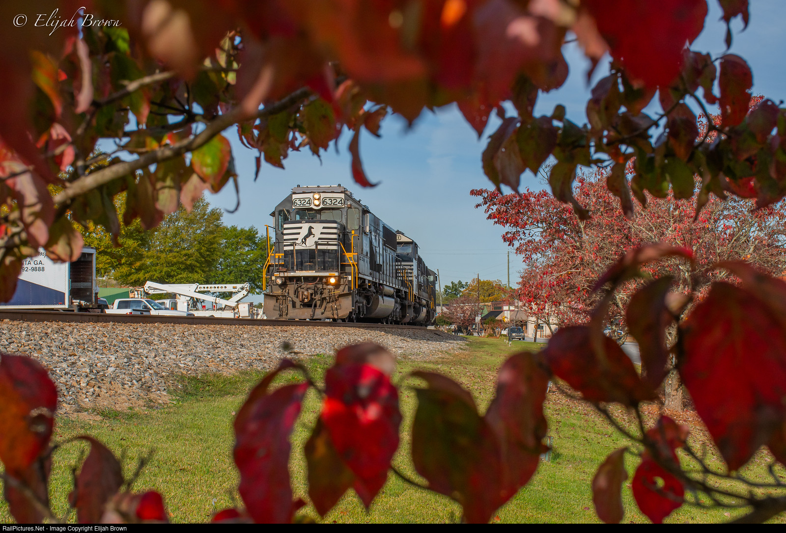 NS 6324 leads NS local A25 through Tallapoosa, GA eastbound with the fall colors starting to come alive