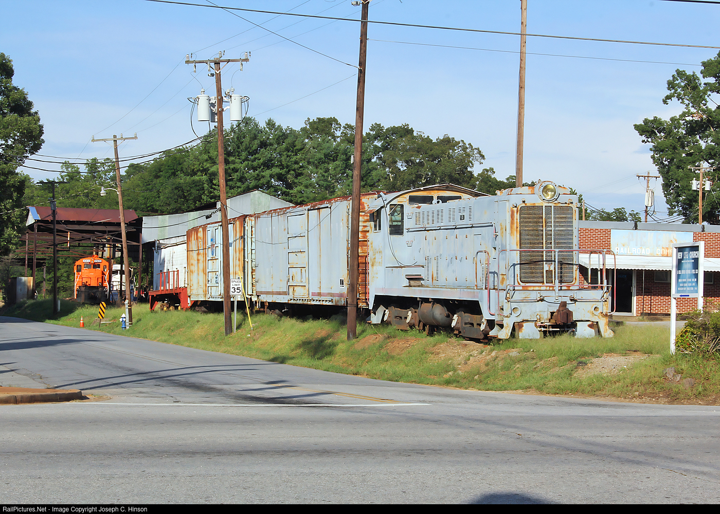 Pickens Railroad Baldwin VO-660 and two box cars sit at the old shop in it's namesake town while a PICK GE U18B and former South Carolina Central GP10 sit in the background.
