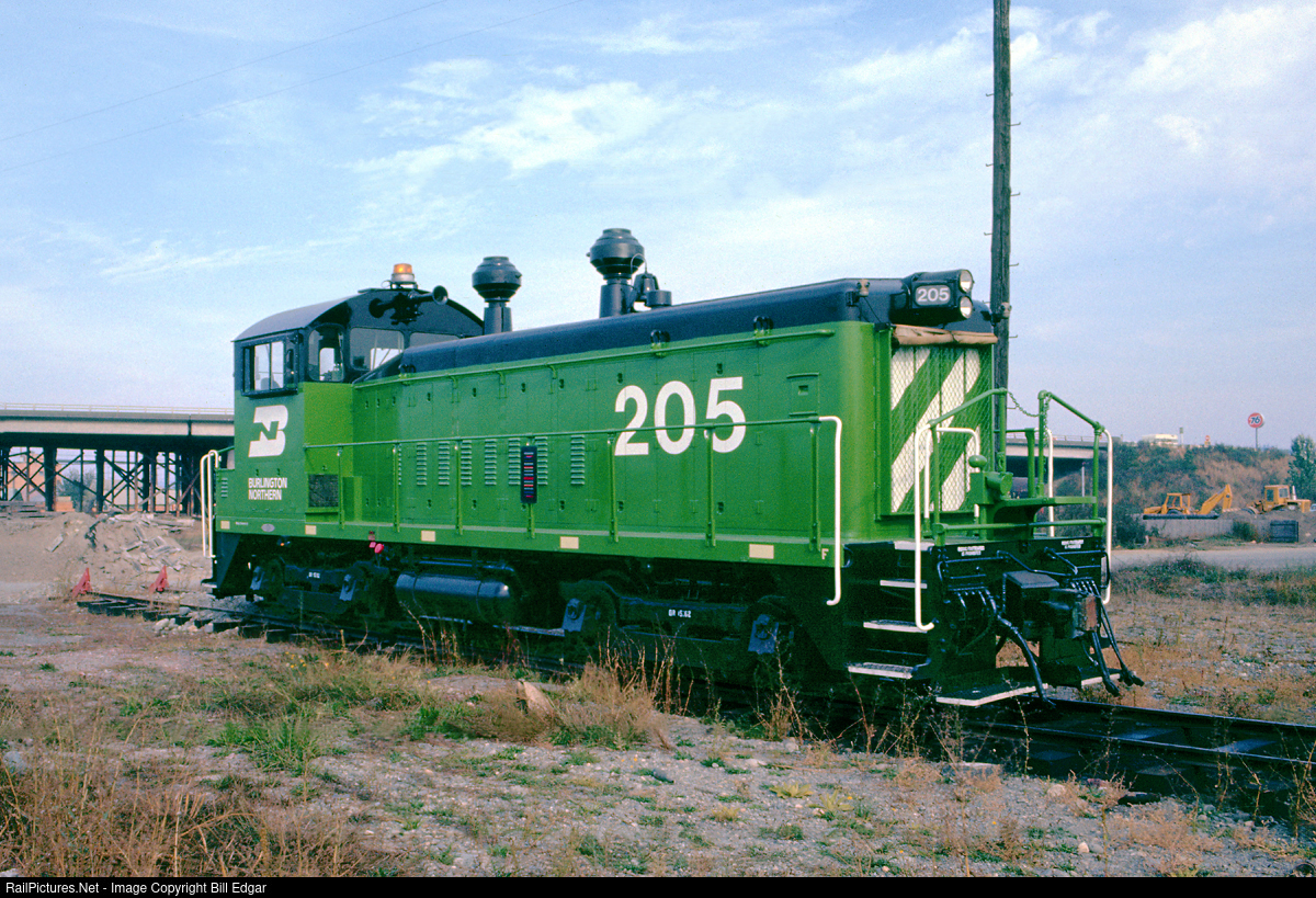 BN 205 sports a fresh coat of paint at Auburn Yard, Auburn, WA. The SW1200 was built as NP 146 in February 1957, and would survive the BNSF merger becoming BNSF 3540.