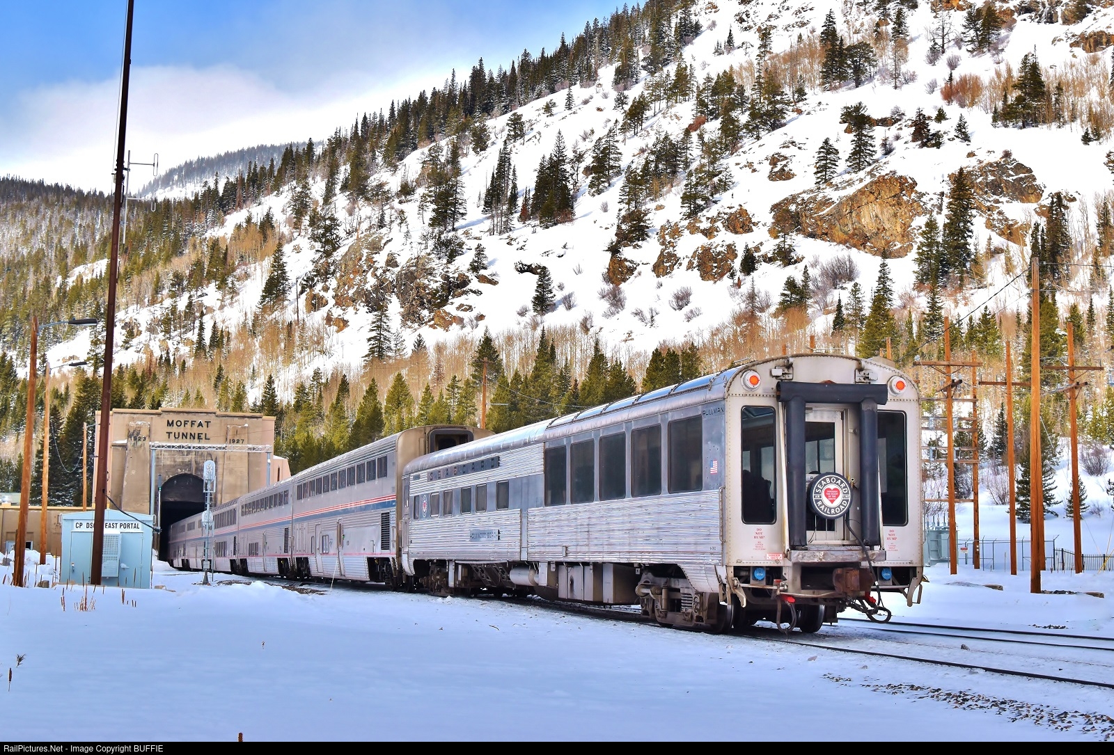 TCRX 800129 is one of three pullman cars made for the Seaboard Air Line Railroad, which existed from 1900 to 1967. These specially designed cars which ran on the Silver Meteor trains from New York to Florida in the 1950's and 60's, featured large windows and skylights in the back half of the car. Of the three built, one was scrapped, and this is one is the only one running the rails today. The car was restored by Keith White and is now owned by Robert Riley. We see it here about to enter the fabled Moffat Tunnel as it heads west on the main line through the Rockies.