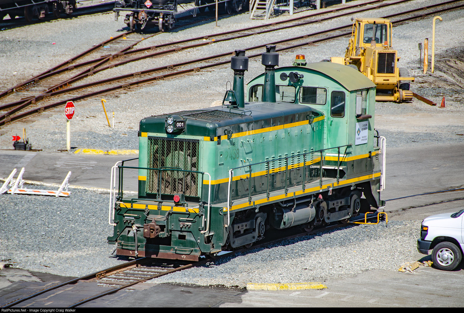 When the British Petroleum (BP Products North America) refinery in Carson was sold to Tesoro Petroleum, their SW1200 switcher, BPOX 458, became Tesoro 001. Built by EMD in February 1959 as Colorado & Southern 157, later renumbered to C&S 252 and, eventually, parent company Burlington Northern absorbed the C&S and renumbered this diesel BN 252. The BN merger with the Santa Fe in 1995 caused this locomotive to become BNSF 3520. BNSF eventually sold it to Arco Petroleum Products, it got renumbered ARPX 458. When BP acquired Arco, this engine retained it number but the reporting mark changed to BPOX. (Carson, California – February 23, 2014)