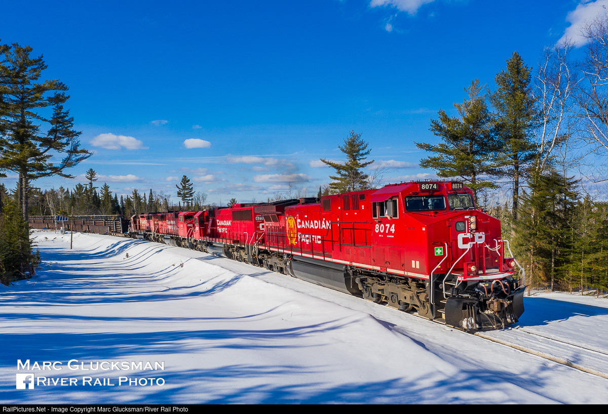 Sunday Snow Extra. A Sunday "extra" edition of Canadian Pacific Railway Train 250 was actually carrying freight for CP as the customer, with a trainload of continuously welded rail as it approached Tarratine Road in Rockwood, Maine on the afternoon of Sunday, February 28, 2021. In this sparsely populated area, the silence was shattered by the lashup of CP 8074 (AC4400CWM, Beaver Unit) leads 6232 (SD60) 6258 (SD60M) and 5936 (SD40-2). The bright sunshine belies the frozen temperatures, but when the shot works out you barely remember being cold.