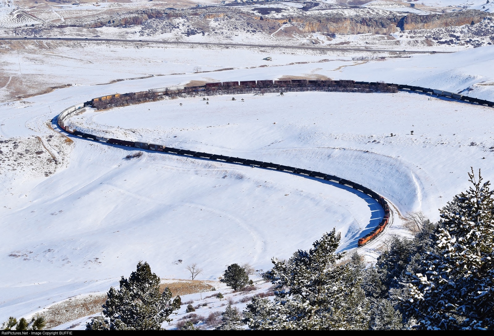 BNSF 6339 (ES44AC) brings a freight through the Big 10 Curve at Rocky, Colorado as it descends the Moffat Tunnel Sub towards Denver.