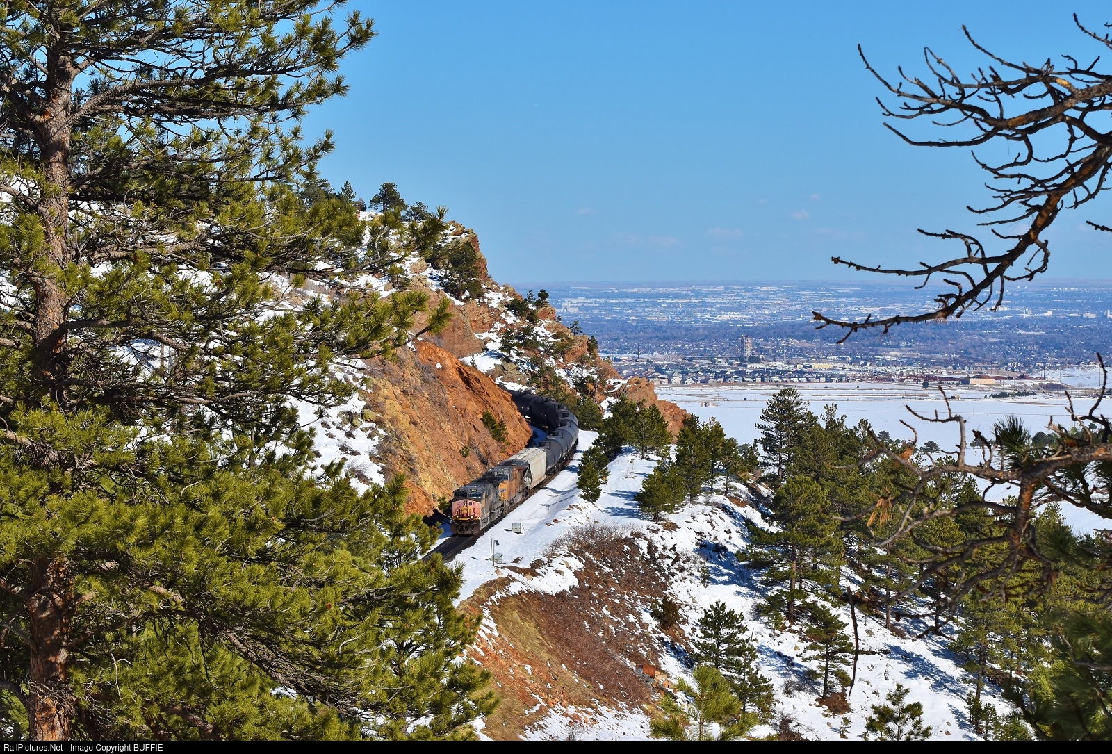UP 6318 (AC4400CW) is one of three remaining active Southern Pacific painted units running patched for the Union Pacific. Here it runs down from Tunnel #1 at Plainview, Colorado.