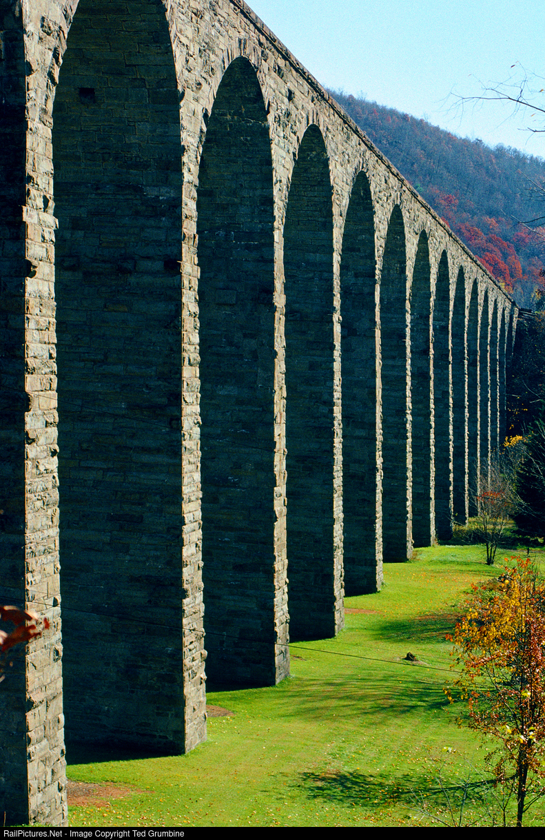 “17 Arches of Grace” Built in 1847-48 by Erie predecessor New York and Erie Rail Road, the Starrucca Viaduct spans the wide valley of Starrucca Creek, a tributary of the Susquehanna River, in Lanesboro, Pennsylvania.