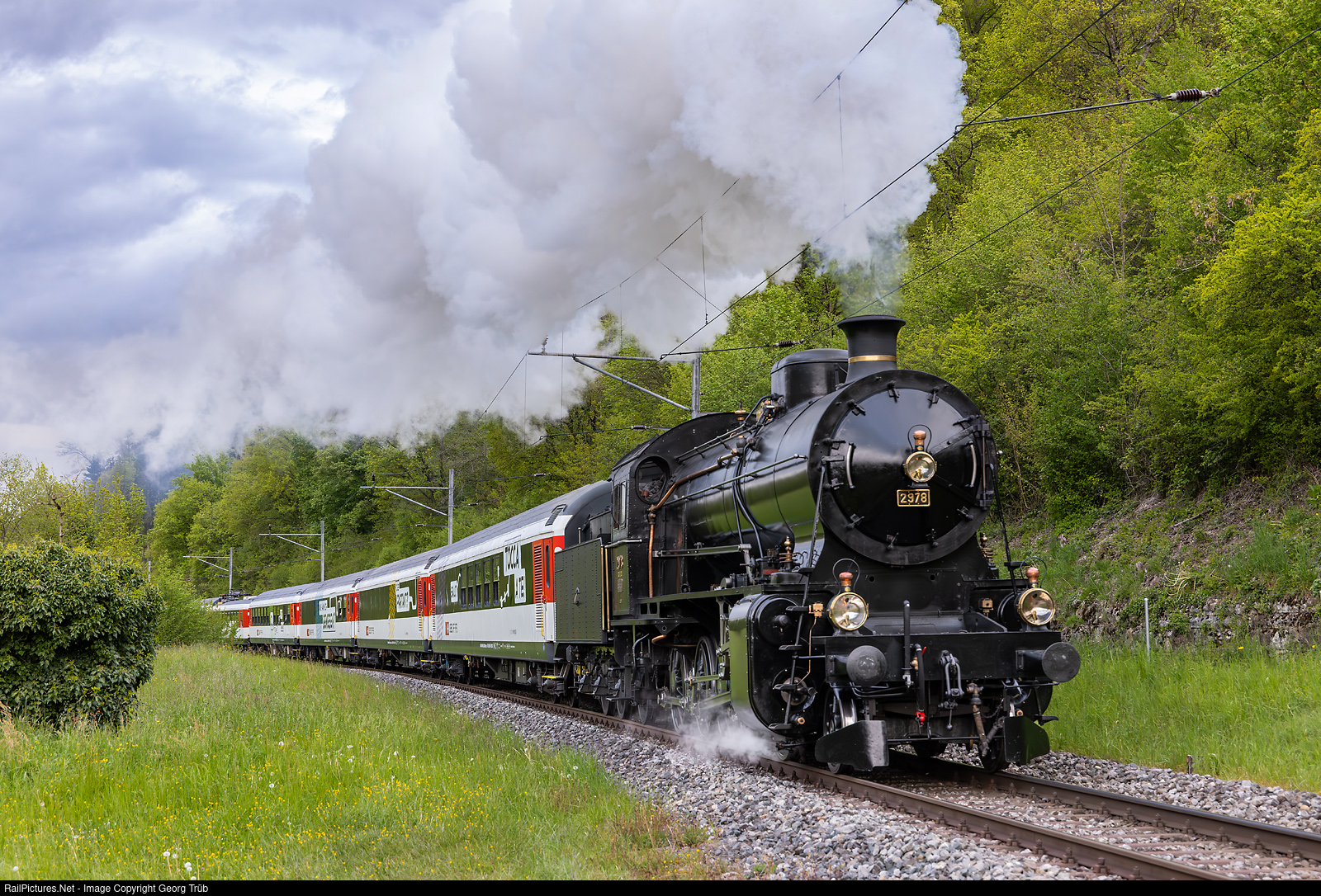 On this day, the 2-10-0 freight steam locomotive C 5/6 # 2978 from SBB Historic carried the school train from Basel Badischer Bahnhof via the old Hauenstein line to Olten. Train 79971 is on the Sissach-Läufelfingen-Olten line between Diepflingen and Sommerau which was opened by the Swiss Central Railway (SCB) in 1858, on a gradient of 2.3 %. The carriages of the school and adventure train are stationed at a station for several days at a time and can be visited by school classes. In a hands-on and exciting learning environment, a team of pedagogically trained moderators works with the pupils on topics such as safety, sustainable energy use, mobility and career choices.
