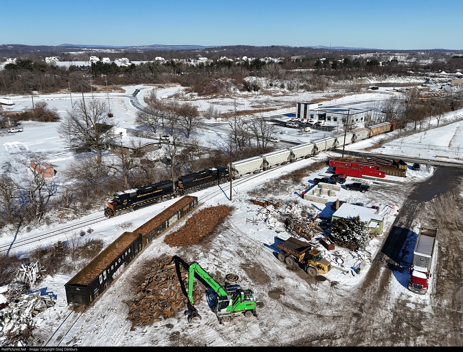 | WW102 passes part of my scrap yard with a new crane in the foreground and a relatively new scrap gondola owned by one of our customers, FE Trading. If you notice closely the cars are already loaded, we staged materials for the next cars. Despite only having a siding with capacity for 3 cars (2 if long cars), we were able to ship 55 cars in January alone. The WW came twice some days! We are working to rearrange our track arrangement and make investment for the future but it is a slow process requiring site plan approval. |