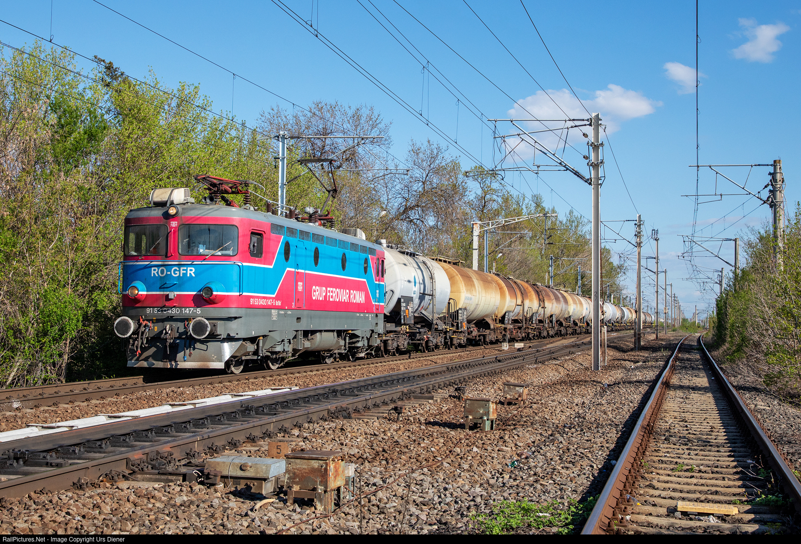 | The GFR locomotive 43 0147, built in the former Yugoslavia, was leading a tank car train towards Bucharest.