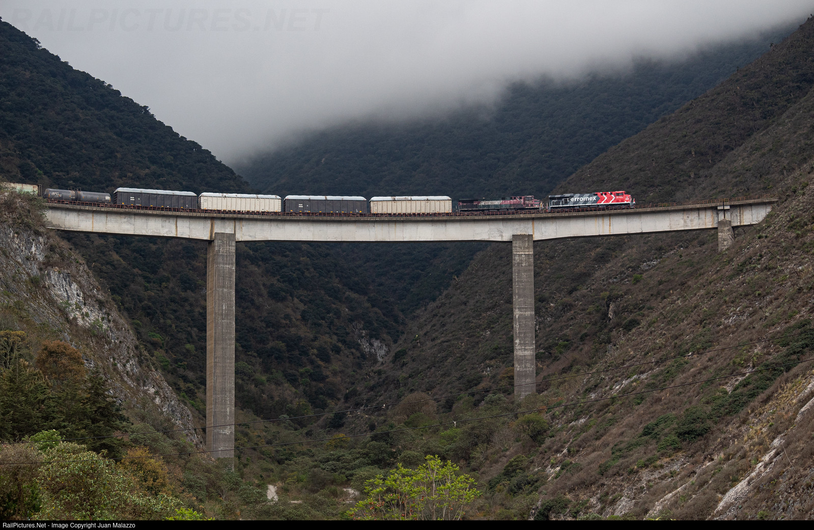The head end is seen passing by the Viaducto Vaqueria, a jaw dropping 870ft long/125ft tall bridge located right between Tunnels No. 14 "Morelos" and No. 15 "Guerrero". |