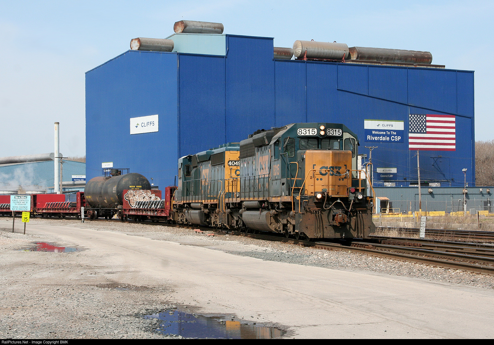 CSXT 8315 leads a local eastbound past the Cleveland Cliffs Riverdale Mill in Riverdale.