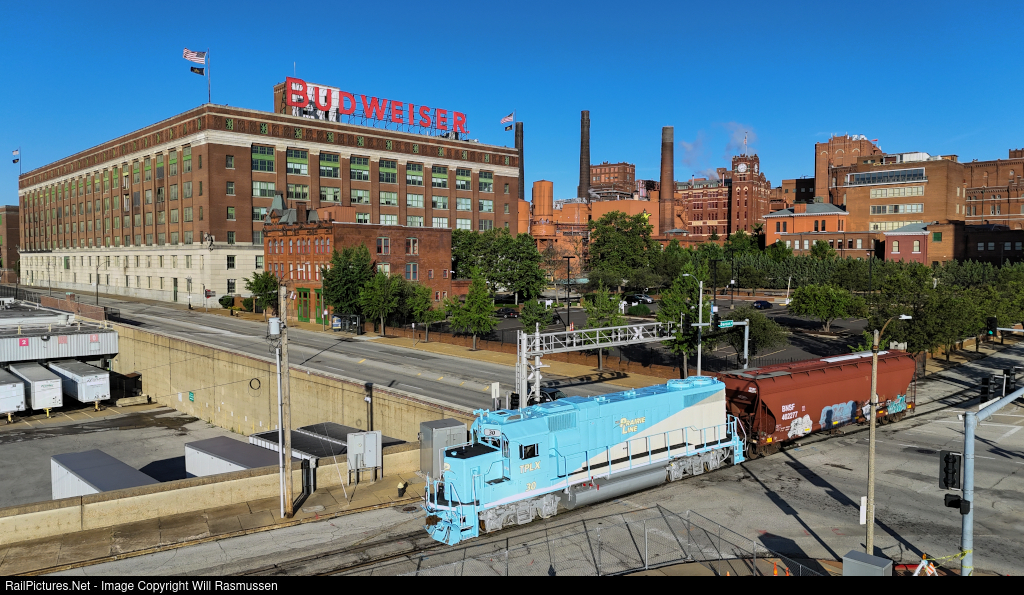 | The Prairie Lines has another paint scheme - this one is a bright blue and white! #30 has just recently entered service in St. Louis, MO and is breaking in on the job that serves the InBev Brewery. After a few days, it is rumored that this unit will move to a Prairie Lines operation in Tennessee. |