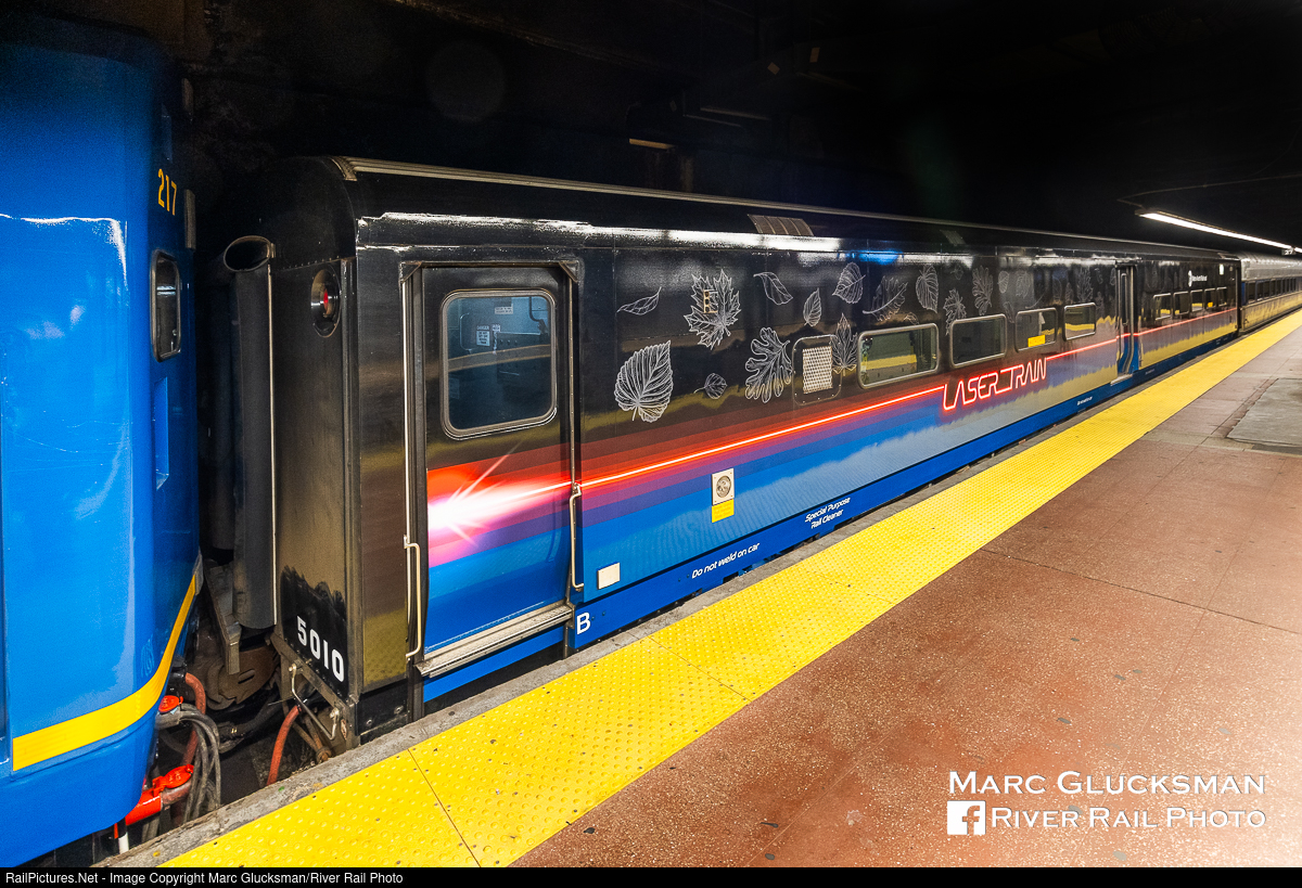 Laser Train In GCT. On Wednesday, June 12, 2024, MTA Metro-North Railroad operated an Inspection Train with wrapped heritage unit MNCW 217 (Penn Central/40th Ann), MNCW 5010 (Laser Train), and its 3 office cars. The cars are in fact old, one former New York Central and the other two former Lackawanna Railroad. The locomotives are contemporary models, but "wrapped" in the paint scheme of predecessor railroads. The train headed up the New Haven Line to New Haven, Connecticut, where the train then went around the loop for the return trip to Grand Central Terminal, giving railroad executives and management the opportunity to inspect many ongoing, completed, and needed improvements on the line. The Laser Train car (MNCW 5010) is one of two Comet IIIs (5009 is the other) purchased by the MTA for West-Of-Hudson service. After retirement, they came to the east side of the river.