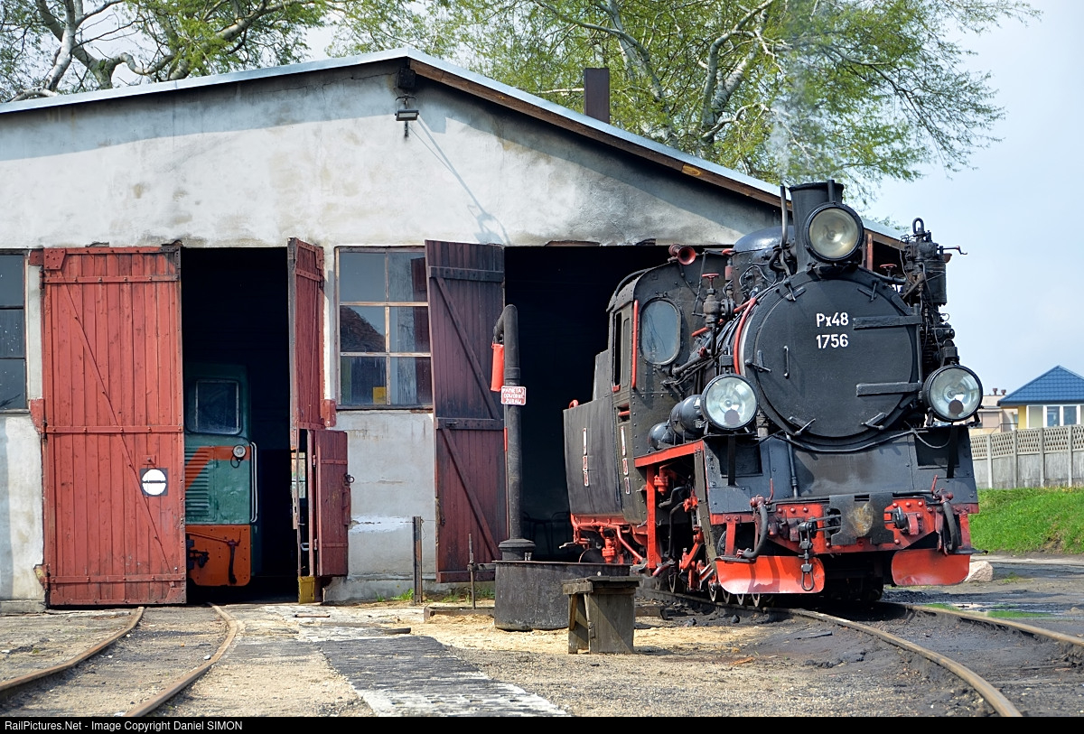 Narrow gauge Px48 #1756 is waiting for a next assignment outside the Sroda shed.