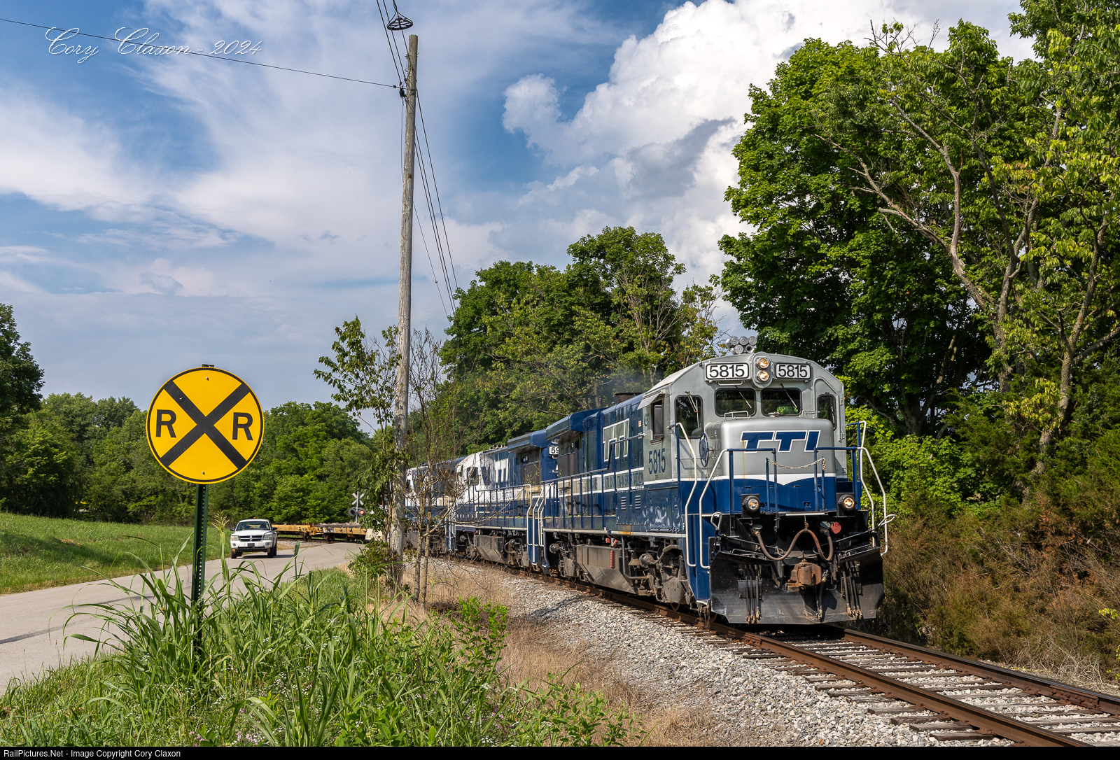 | A trio of TTI GE locomotives are headed back to Paris after rearranging cars in storage on its mainline between Paris and Carlisle. This line once hauled coal to a transloading facility along the Ohio River in Maysville. However, after a series of washouts along the line several years ago, there has been no through traffic. MBRail has recently taken ownership of the line and has begun rehabilitation work toward Maysville. Rumors are of an intermodal facility, however those are currently not confirmed. Rumor also has it that a storage yard will be built in Carlisle. |