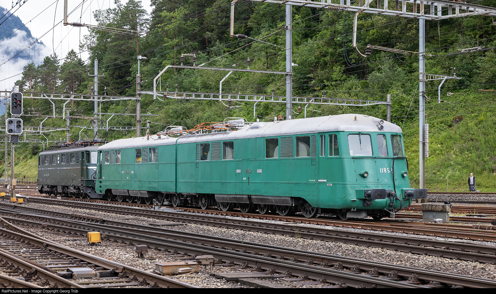 Between 1931 and 1938, the Swiss locomotive industry built a total of 3 large double locomotives especially for heavy trains on the Gotthard line. All were prototypes, i.e. very different in terms of technology and performance. The last to be built, the so-called "Landilok", Ae 8/14 # 11852, was built especially for the Swiss National Exhibition in 1939 as a reference for Swiss locomotive construction by SLM and the BBC and was the most powerful locomotive in the world at the time with an hourly output of 8162 kW. Today, locomotive # 11852, which is no longer operational, was transferred from its previous location in the Arth Goldau depot to Erstfeld, where it will complement and enrich SBB Historic's collection of Gotthard locomotives in Erstfeld. The Ae 8/14 # 11852 is moved in Arth Goldau by the Ae 6/6 # 11411 "Zug", before the transport to Erstfeld.