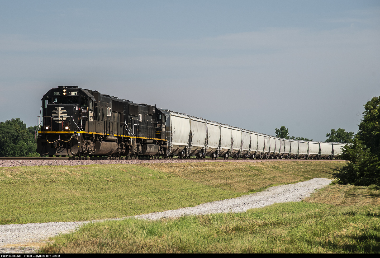 | The Centralia, IL based local approaches the junction with the St. Louis Sub mainline with empty hoppers for limestone to interchange with the Kaskaskia Regional Port District at Lenzburg, IL. |
