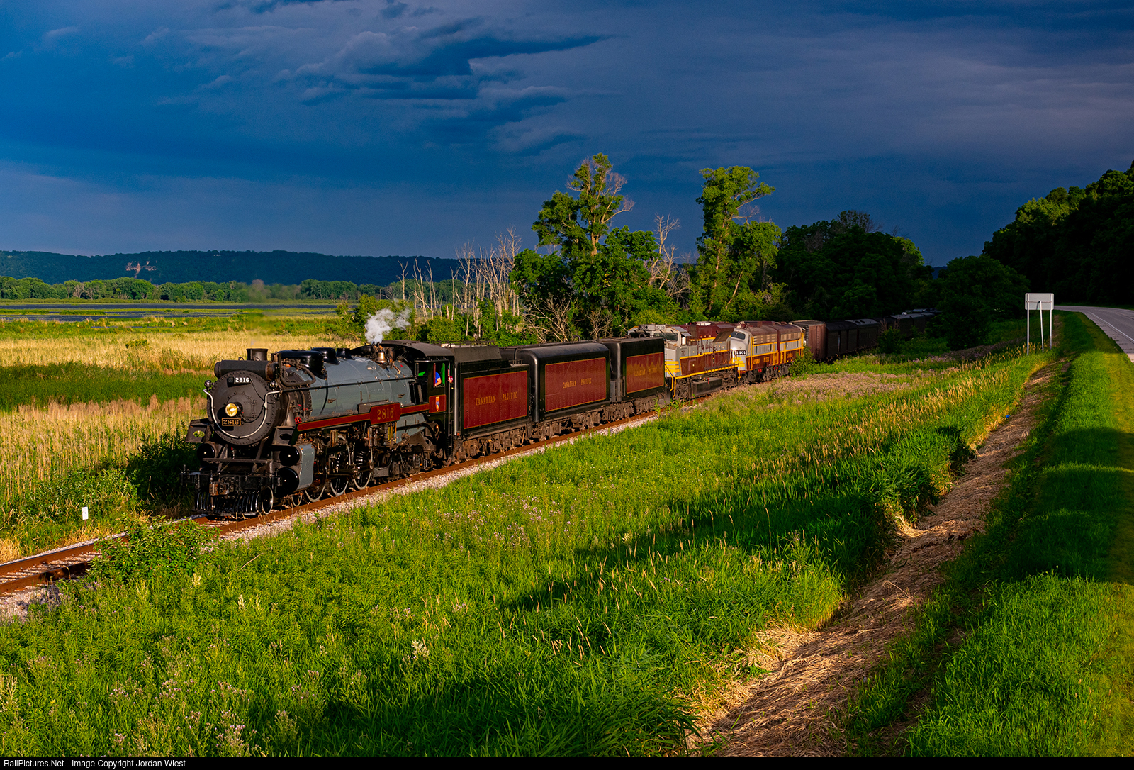 | In a dramatic scene, 2816 heads up the last few miles of the Marquette Sub as the sky opened up, making for some incredible stormlight on the final stretch to La Crescent. |