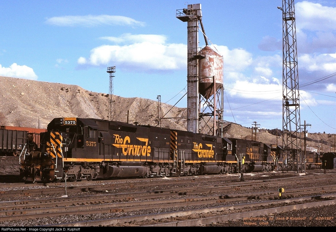 D&RGW SD40T-2 5375, engine terminal at Helper, Utah. April 20, 1997. Jack D Kuiphoff © photo