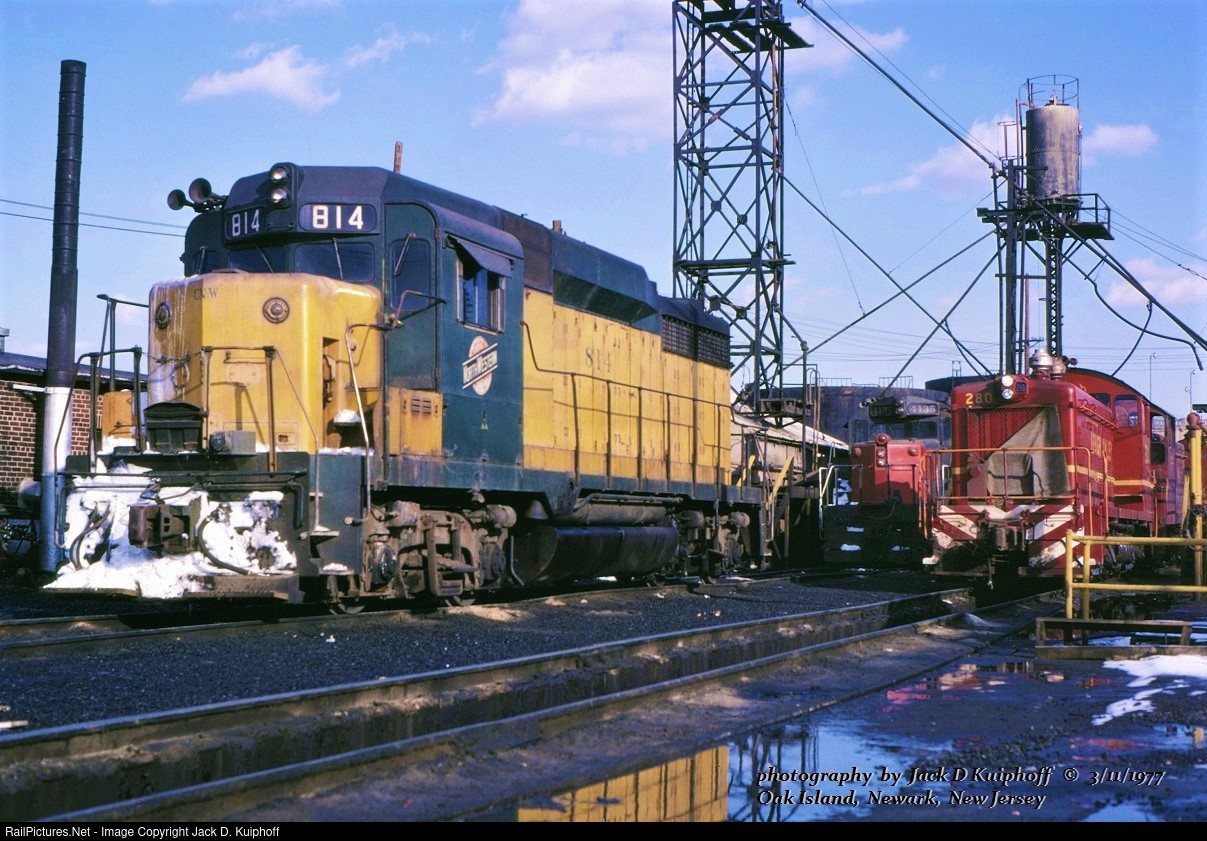 | C&NW, Chicago and Northwestern, GP30 814 at Oak Island, Newark, New Jersey. March 11, 1977. Jack D Kuiphoff © photo |