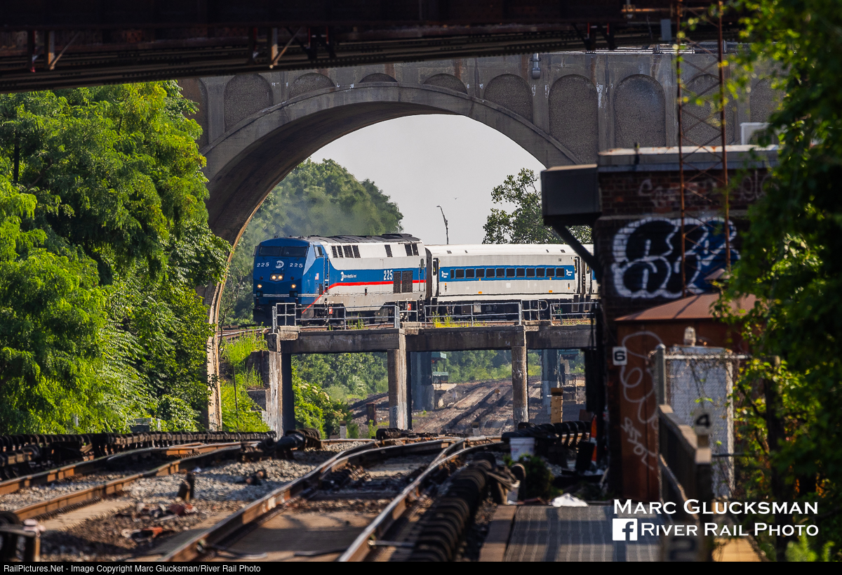 Locomotive Leading On The Flyover. On the morning of Monday, July 10, 2024, the consist of MTA Metro-North Railroad Train 1831 was reversed before departing from Danbury, Connecticut, an event that occurs when there is a mechanical problem with the cab control car. All scheduled coach trains to Grand Central Terminal are oriented to have the cab control car leading and the locomotive trailing. The was routed over the flyover at Woodlawn Junction before passing through the station. The long closed JO Tower stands in the foreground as the train is framed by the tall arches of Nereid Avenue in the Bronx, New York.