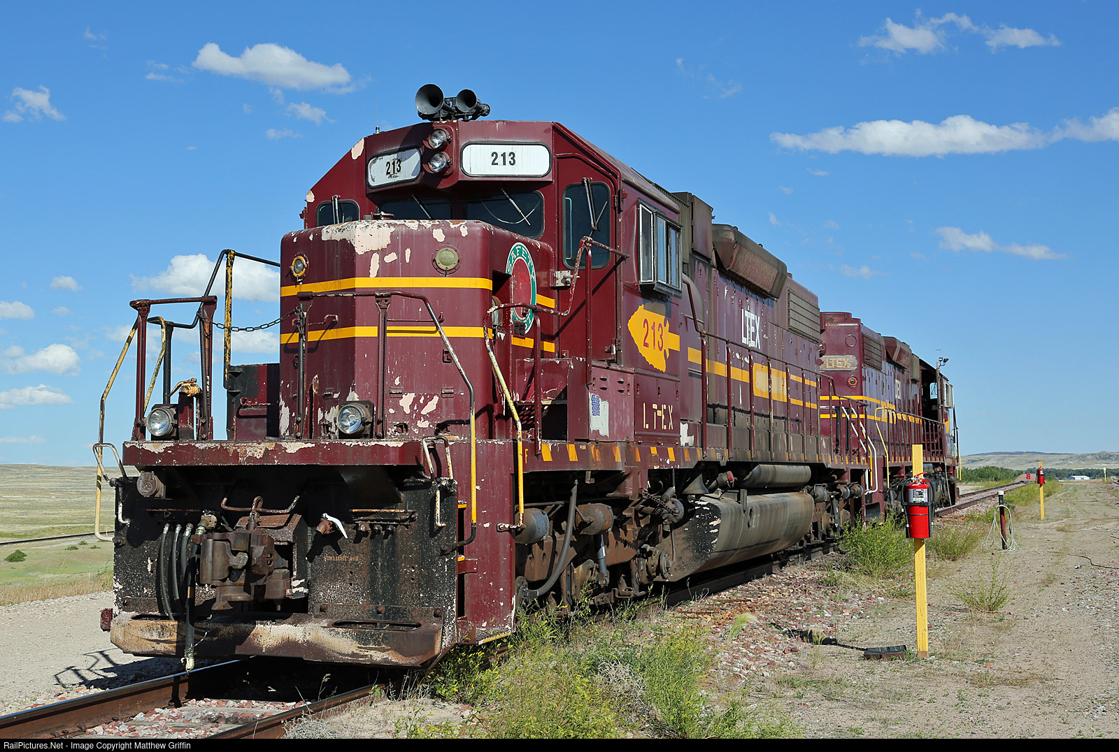 RailPictures.Net Photo: LTEX 213 Larrys Truck & Electric (LTEX) EMD SD38-2 at Douglas, Wyoming by Matthew Griffin