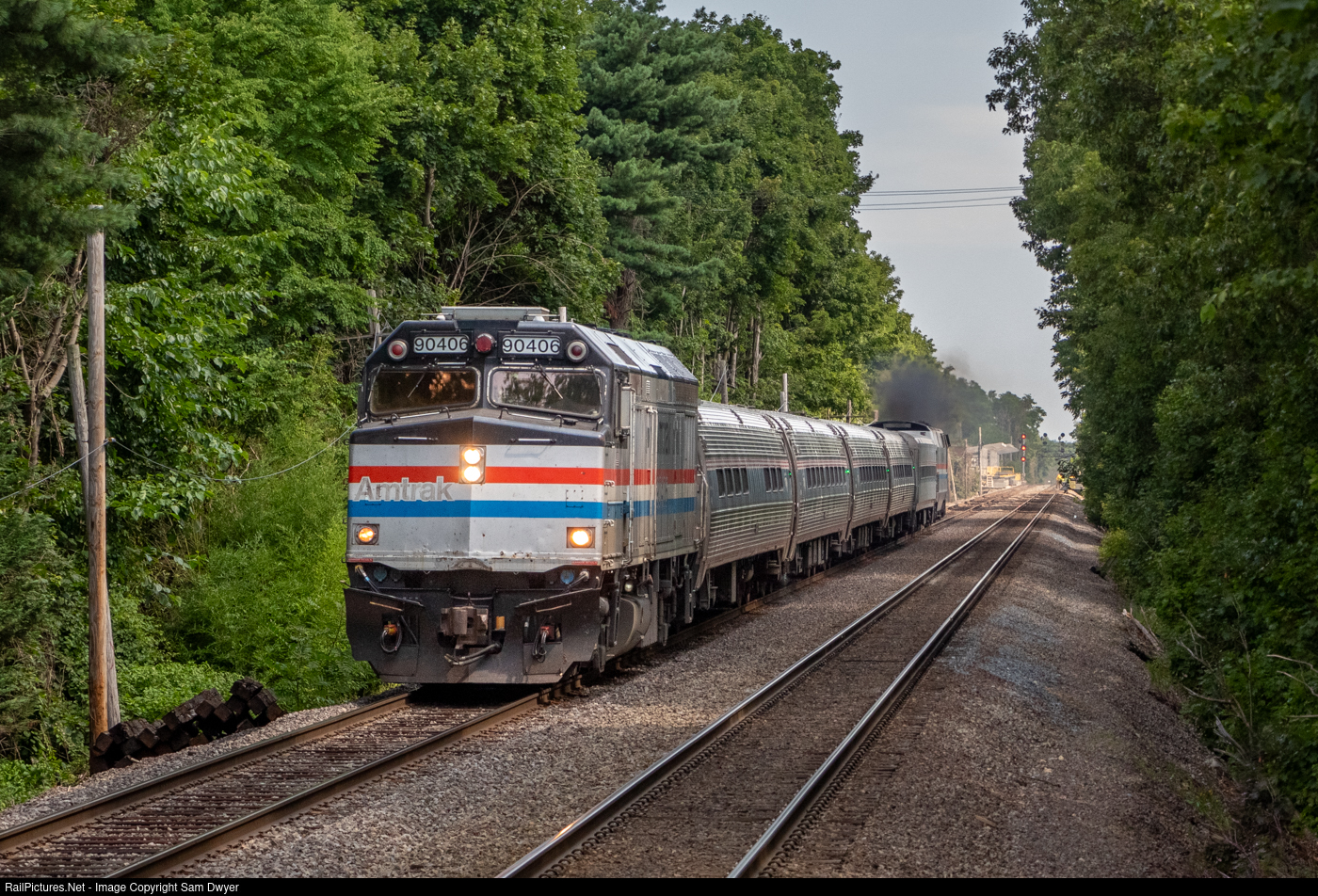 RailPictures.Net Photo: AMTK 90406 Amtrak EMD F40PHR NPCU at Winchester, Massachusetts by Sam Dwyer