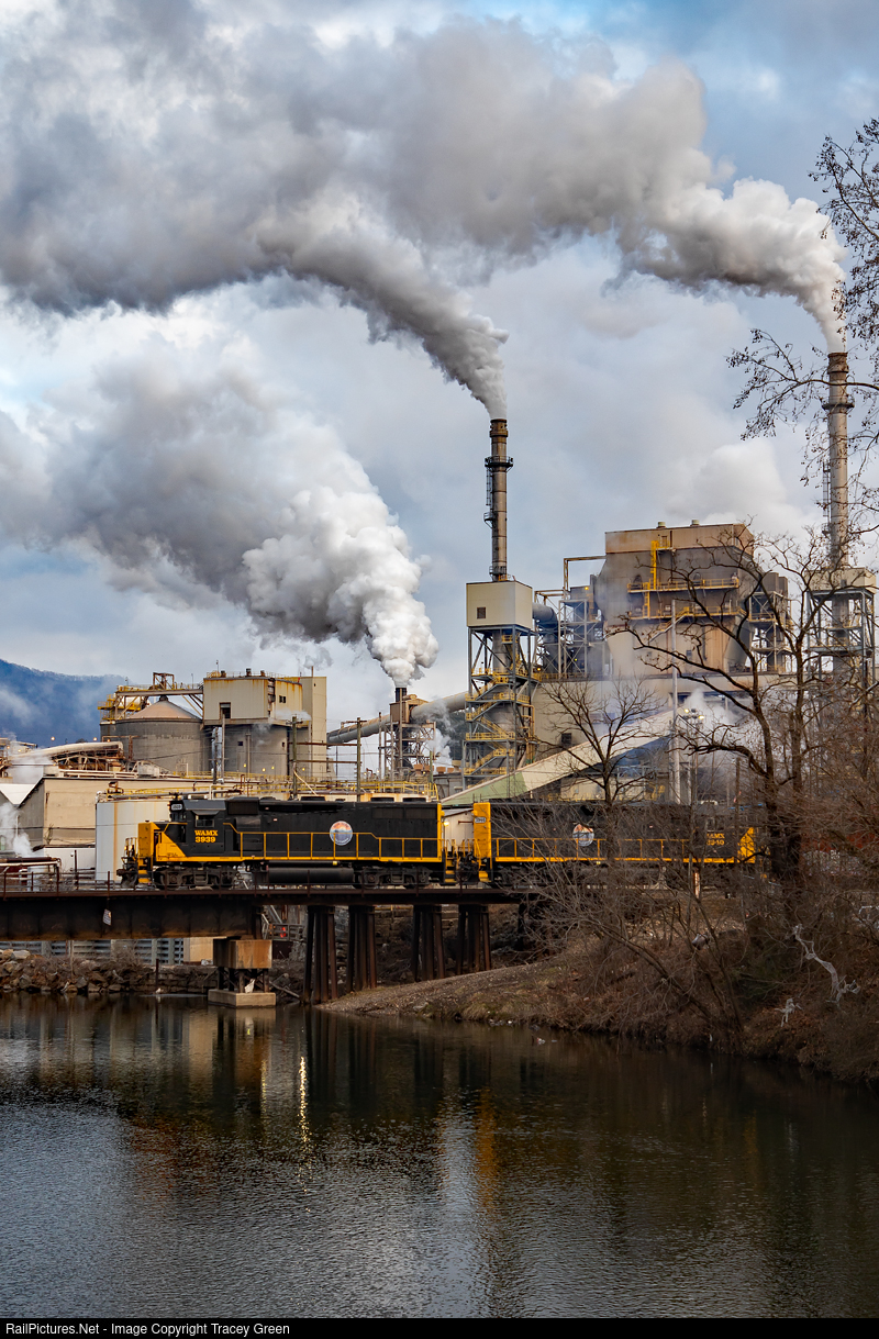 Yesteryear Scenes. T59 works the BLU yard in Canton with the paper mill huffing and puffing in the background. That mill now has closed and, while BLU still serves this line, its operations have been curtailed and the mill is not likely to return to service anytime soon.