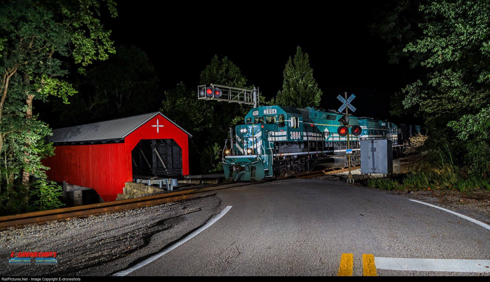 | In the midnight hours A&O local passes the Carrolton Covered bridge along the former CSX Cowen sub. In 2017, the covered bridge suffered substantial damage from a fire, the bridge has since been restored and remains in use to local traffic. |