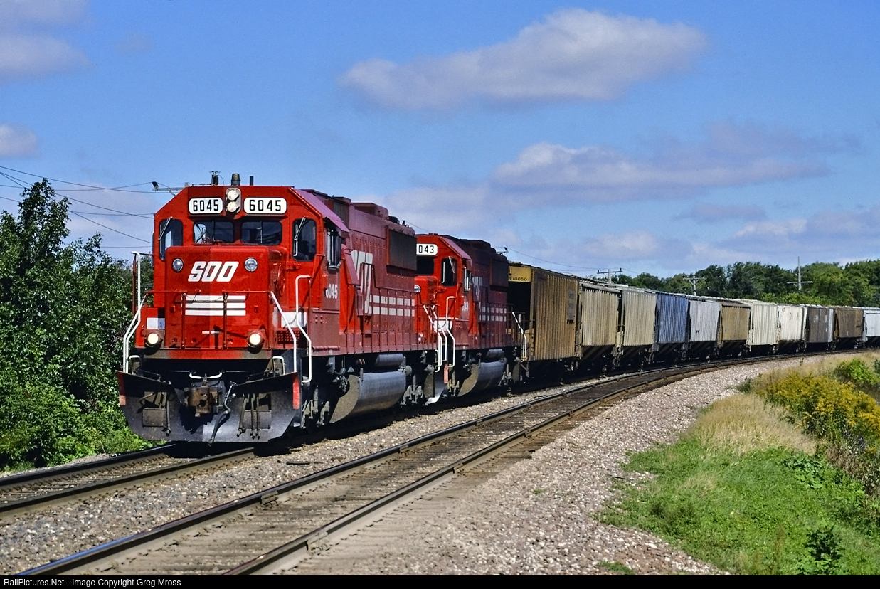 Hard to believe it's been 34 years...... Soo Line 6045 is about to cross Waterford Avenue in Milwaukee, WI in October of 1990. The grain train is just beginning the assault of Lake Hill. This location was known as "barking dog 2" at the time for, you guessed it, some dogs that would always be barking. Soo Line's SD60's looked good in their candy apple red paint.
