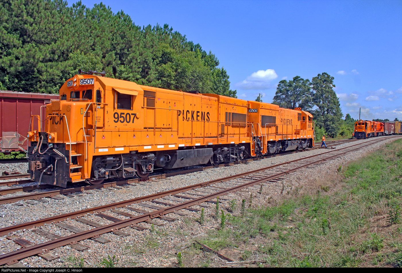 Pickens U18B 9507 was built in 1974 for the Seaboard Coast Line as 351. It then went on the CSX roster and in the 1990s was renumbered CSXT 9507 and painted into an range MoW scheme. Pickens has sine repainted it orange. |