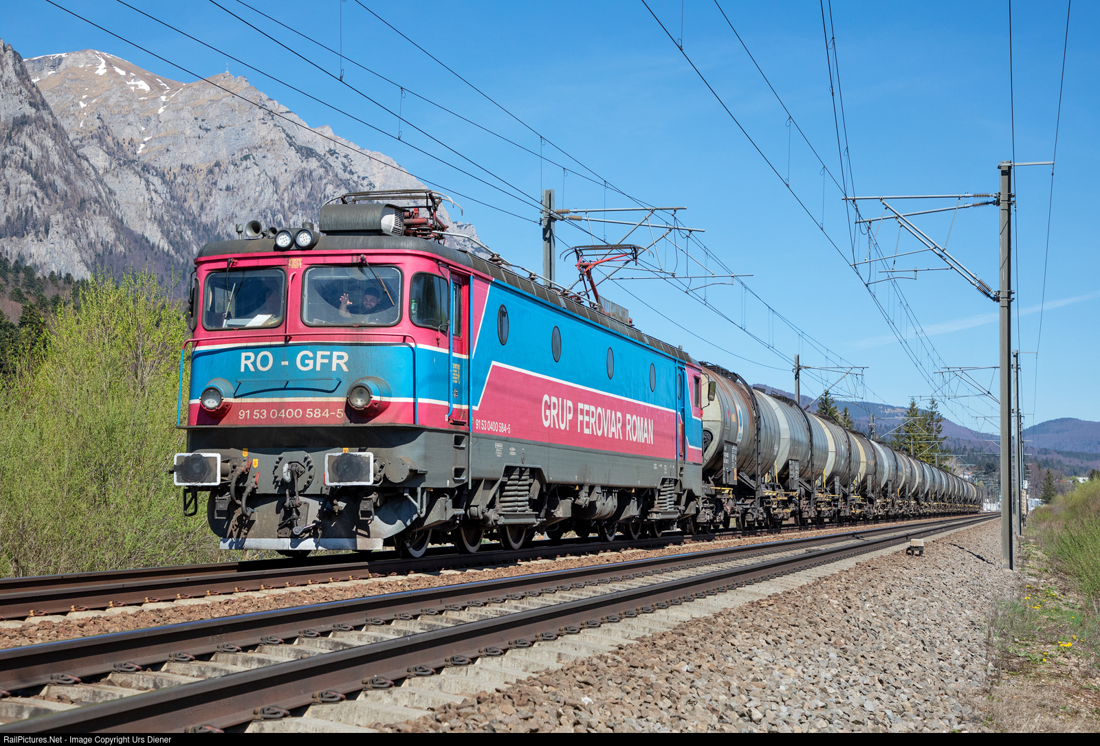 The GFR locomotive 40 0584 is leading a tank car train through the Carpathian mountains towards Bucharest.