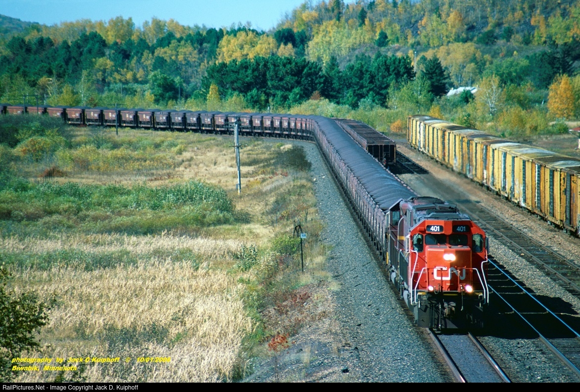 | CN 401 -DM&IR 416, heading for Two Harbors at MP59, Biwabik, Minnesota. October 1, 2006. Jack D Kuiphoff photo |