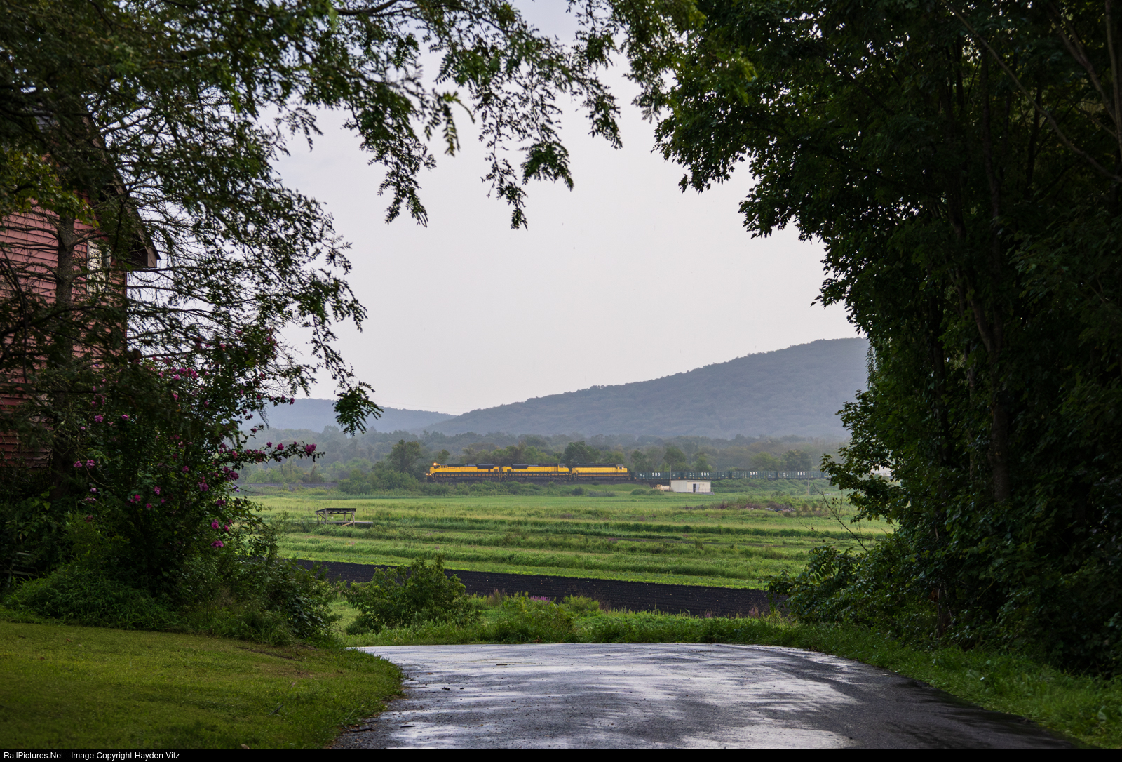 NYSW's SU99 heads past the Chester Onion Fields on its journey to Binghamton. After a sunny day I was surprised to find myself in a downpour and shot out the back of the car to avoid getting wet.