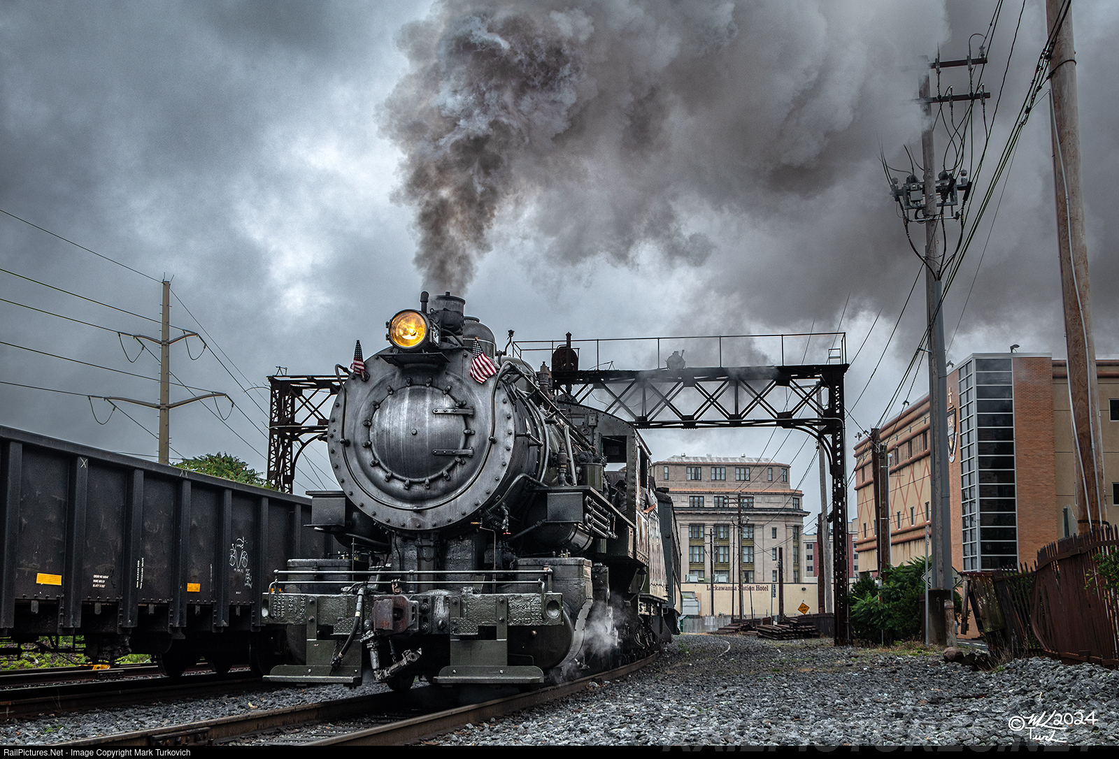 Baldwin Locomotive Works 26 steams through Scranton on a cloudy summer morning.