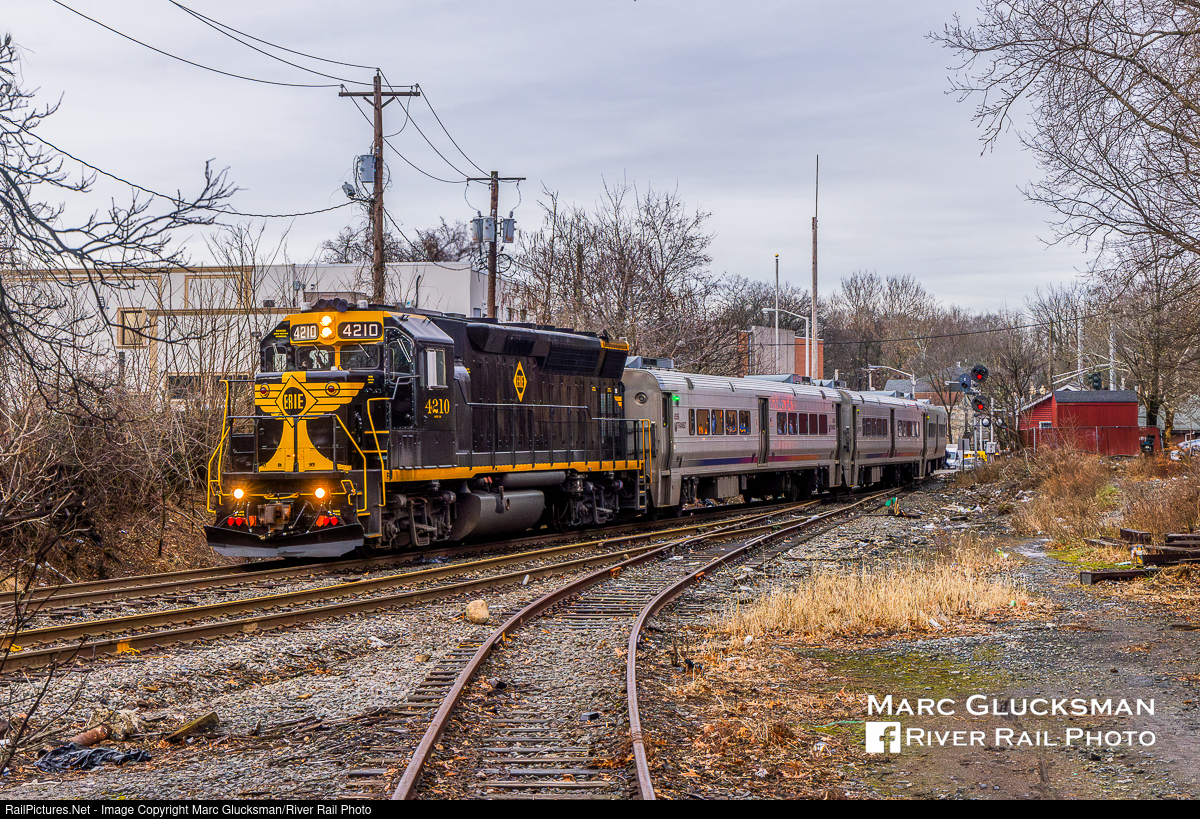 Significant Switch. On January 25, 2024, NJT Train 1621 heads through Spring Valley, New York with NJTR 4210 (Erie Railroad tribute) leading. Based on NJ Transit public info, this locomotive should be an attendee at the upcoming 'Hoboken Festival' on September 15, 2024, giving the public a chance to see this extrapolation of Erie Railroad history. In this photo, the train is heading to Woodbine Yard on the former NJ & NY Thiells Mount Ivy Branch from the Pascack Valley Line. The track in the foreground is the Piermont Branch, which was a premiere rail line in the United States in the 1850s, but this portion has since failed into disuse, seeing its last train in the late 2000s.