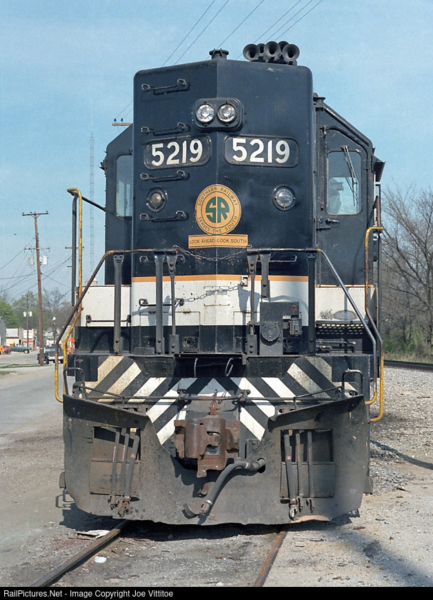 Built in January 1977 for the Southern GP38-2 5219 is parked on the house track at Buechel for its next job.