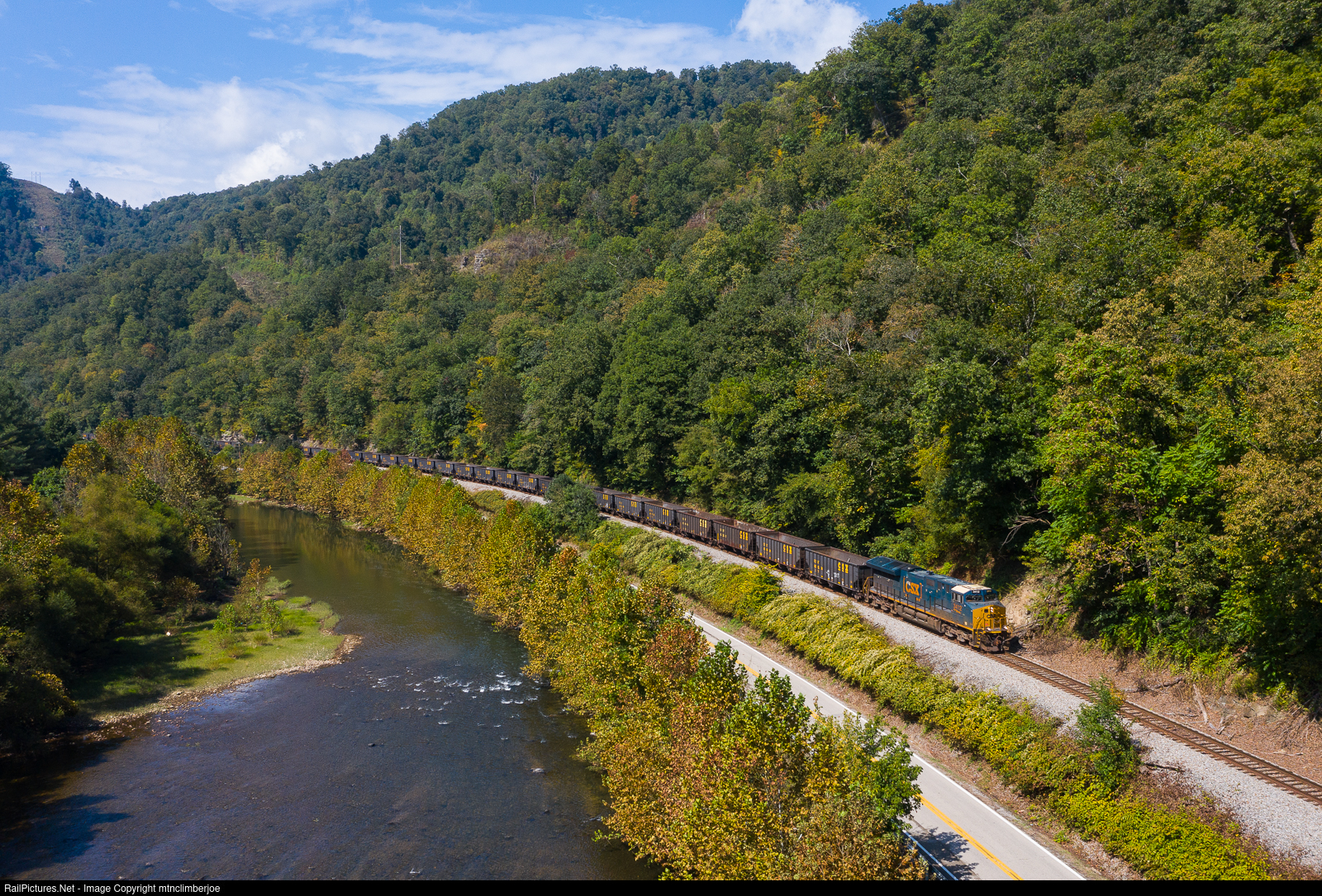 Running along the banks of Guyandotte River along the Hanging Rock Highway, CSX mine run R211 is approaching the town of Dabney, West Virginia shortly after departing from Peach Creek Yard. This train is bound for the Buffalo Subdivision to head to the Coronado Global's Logan County Complex for loading.